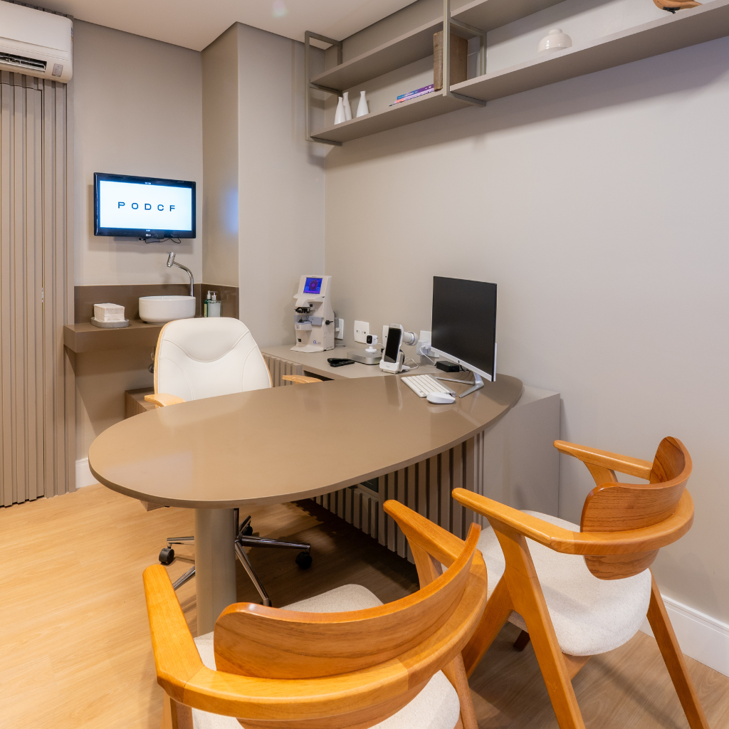 Diagnóstico e correção de problemas da córnea, incluindo cirurgia refrativa para reduzir a dependência dos óculos.